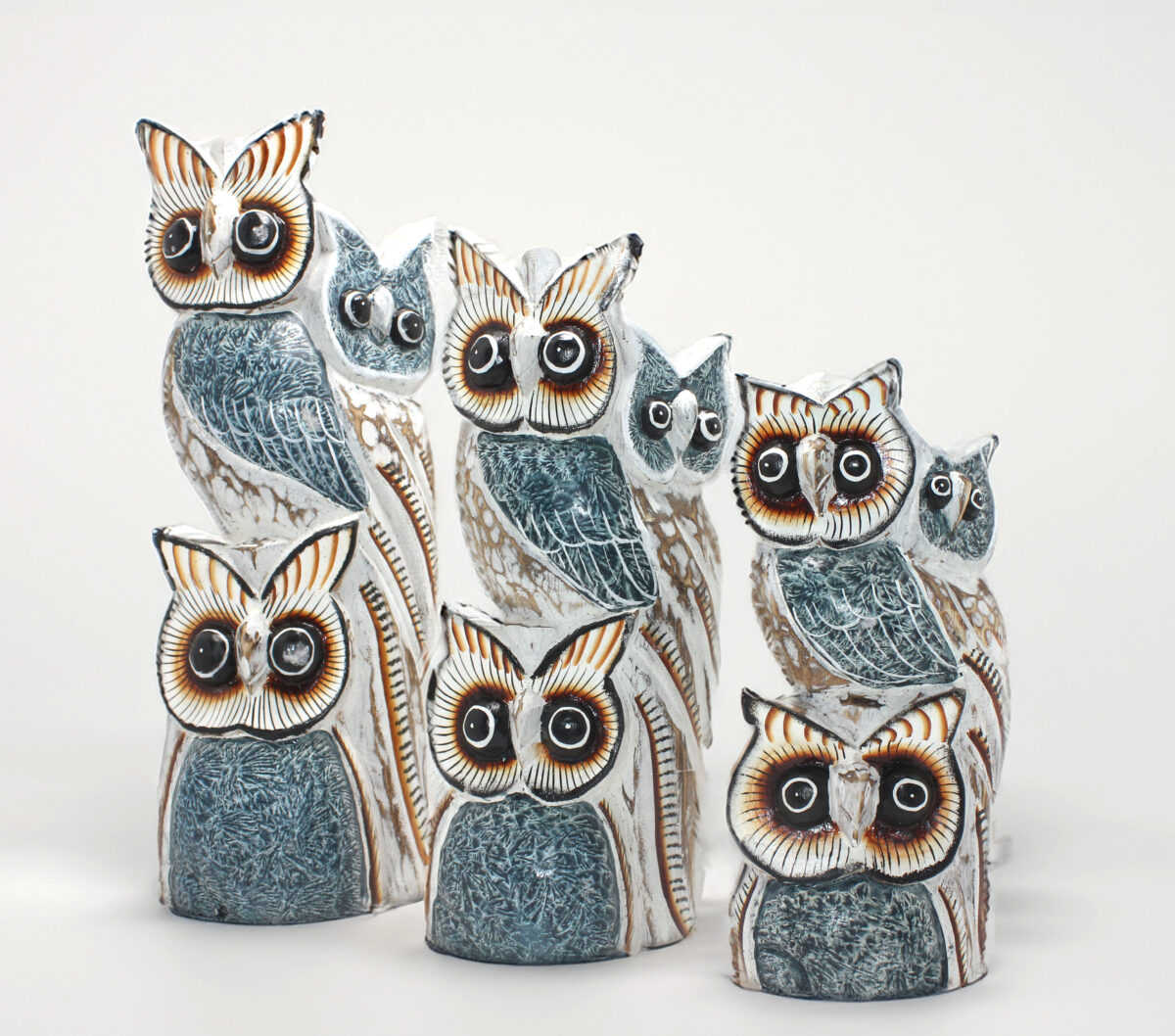 AHŞAP 3’LÜ BAYKUŞ SETİ MODEL 6Ürün Özellikleri30x40x50 cm boyutlarında olan bu üçlü baykuş seti, doğal ahşap malzemeden el işçiliğiyle üretilmiştir. Büyük boyutları ve detaylı işçilikleriyle dikkat çeker. Her bir baykuş figürü, özenle işlenmiş detaylar ve estetik tasarımlarıyla ev veya ofis dekorasyonuna benzersiz bir şıklık katmaktadır. Baykuş figürleri, bilgeliği simgeleyen klasik bir tema ile tasarlanmış olup, hem anlamlı hem de şık bir dekoratif aksesuardır. Ahşabın doğal dokusu ve el işçiliği ile her biri özgün bir parçadır.Paket İçeriği1 Adet Ahşap 3’lü Baykuş Seti Model 6