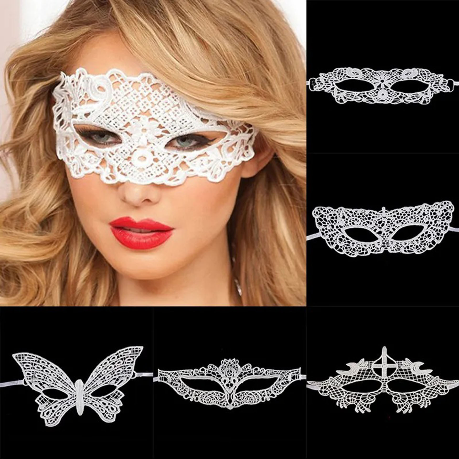 Beyaz Renk Dantel Kesim Balo Maskesi