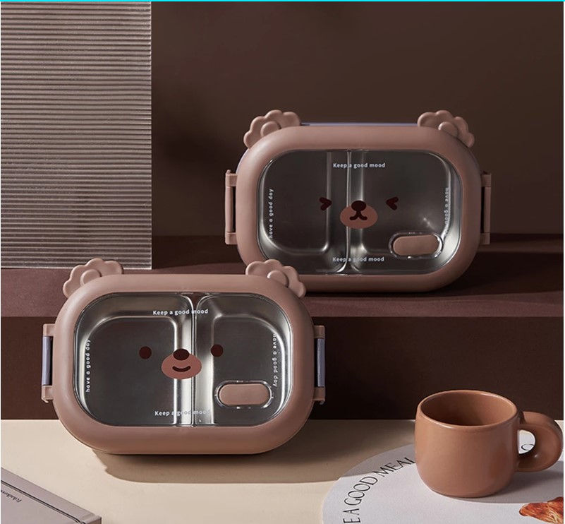 Bölmeli Sevimli Hayvan Tasarımlı Paslanmaz Çelik Yemek KutusuGörselde, sevimli bir hayvan yüzü tasarımıyla öne çıkan, bölmeli paslanmaz çelik yemek kutuları bulunuyor. Bu tür ürünler, çocuklar için özellikle çekici ve pratik öğle yemeği saklama çözümleri sunar.Ürün Açıklaması:Bu sevimli hayvan tasarımlı paslanmaz çelik yemek kutusu, çocukların öğle yemeklerini güvenle taşıması ve tüketmesi için mükemmel bir seçimdir. İçerisindeki iki ayrı bölme sayesinde farklı yiyecekleri bir arada tutmanıza olanak tanır. 304 kalite paslanmaz çelikten üretilmiştir ve sağlıklı bir yemek saklama deneyimi sunar. Sızdırmaz kapağı sayesinde yiyeceklerinizin dökülmesini önler ve çocuğunuzun çantasında güvenle taşınabilir. Şirin hayvan yüzü tasarımı ile çocukların favorisi olacak bu yemek kutusu, hem pratik hem de eğlencelidir.Paket İçeriği:1 Adet Bölmeli Sevimli Hayvan Tasarımlı Paslanmaz Çelik Yemek Kutusu