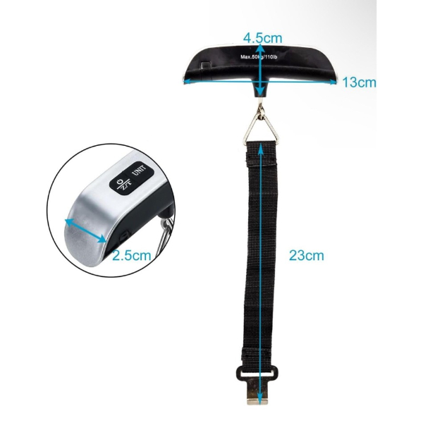Elektronik el bagaj tartısı, seyahatlerinizde valizlerinizi kolayca tartmanıza yardımcı olacak küçük ve hafif bir cihazdır. 50 kg’a kadar ölçme kapasitesine sahip olan bu tartı, taşınması ve kullanımı son derece kolaydır. 13×3,5 cm boyutları ile kompakt ve pratik bir tasarıma sahiptir. Seyahat ederken bagajınızın ağırlığını öğrenmek, havayolu şirketlerinin bagaj kurallarına uymanızı sağlamak için idealdir. LCD ekranı sayesinde tartı sonuçlarını kolayca okuyabilirsiniz. Hem evde hem de seyahatte kullanıma uygun, dayanıklı ve pratik bir üründür.