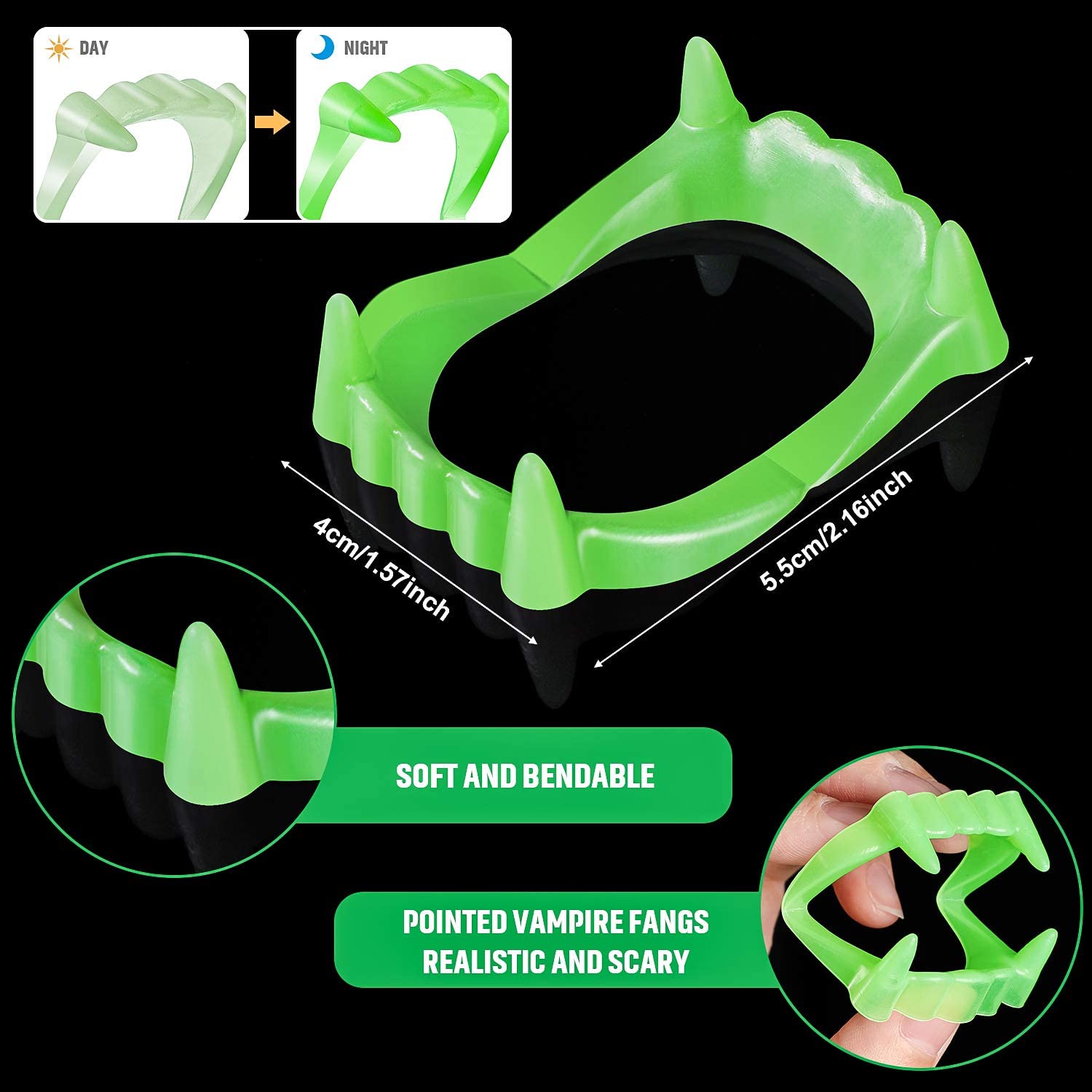 Gece karanlığında fosforlu özelliğiyle ekstra etkileyici bir görünüm sağlayan bu vampir dişi, hem yetişkinler hem de gençler için eğlenceli bir kostüm tamamlayıcısıdır. Fotoğraf çekimleri ve sahne performanslarında da estetik bir etki yaratır.