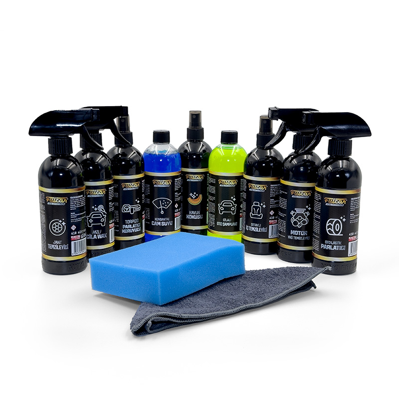FULCAR FULL OTO BAKIM SETİ “Tam Kapsamlı Bakım: Fulcar Full Araç Bakım Seti ile Aracınız Her Zaman Parlak ve Yenilenmiş”Fulcar Full Araç Bakım Seti, araç bakımında mükemmel sonuçlar elde etmeniz için eksiksiz bir çözüm sunar. Bu kapsamlı set, aracınızın iç ve dış yüzeylerini temizlemek, korumak ve yenilemek için gereken her şeyi içerir. 12 parçadan oluşan bu set, araç sahiplerinin tüm bakım ihtiyaçlarını karşılamak üzere özenle hazırlanmıştır.Dış Yüzey BakımıAracınızın dış yüzeyleri için özel olarak formüle edilmiş şampuanlar, cila ve wax’lar, setin önemli bileşenleridir. Bu ürünler, aracınızın boyasını nazikçe temizler, derinlemesine parlaklık kazandırır ve güneşin zararlı etkilerine karşı koruma sağlar. Aracınızın ilk günkü gibi gözükmesini sağlar.İç Yüzey TemizliğiSet, iç mekanınız için geliştirilmiş temizleyiciler içerir. Koltuklar, döşemeler, plastik yüzeyler ve camlar için özel formüller, lekeleri ve kirleri etkin bir şekilde temizler ve aracınızın iç mekanını ferahlatır.Kovalı TasarımFulcar Full Araç Bakım Seti’nin en önemli özelliklerinden biri kovalı tasarımıdır. Bu tasarım, ürünleri taşımayı ve kullanmayı son derece pratik hale getirir. Set, bakım işlemlerini keyifli ve verimli bir deneyime dönüştürür.Set İçeriği • Motor Yağ Temizleyici 410 ml • Cilalı Oto Şampuan 410 ml • Lastik ve Tampon Parlatıcı 410 ml • Konsantre Oto Cam Suyu 410 ml • Jant Temizleyici 410 ml • Torpido Göğüslük Parlatıcı ve Koruyucu 410 ml • Detaylı İç Temizleyici 410 ml • Hızlı Cila Koruyucu Wax 410 ml • Kavun Oto Kokusu 410 ml • Mikrofiber Bez 1 Adet • Plastik Kova 10 L (Organizatör ve Su Kovası Olarak Kullanım) • Uygulama Süngeri 1 AdetFulcar Full Araç Bakım Seti, aracınızın bakımını eksiksiz bir şekilde yapmanız için ihtiyacınız olan her şeyi sunar. Bu kapsamlı set, aracınızı her zaman ilk günkü gibi bakımlı ve şık tutar, güvenle tercih edebileceğiniz bir bakım çözümüdür.