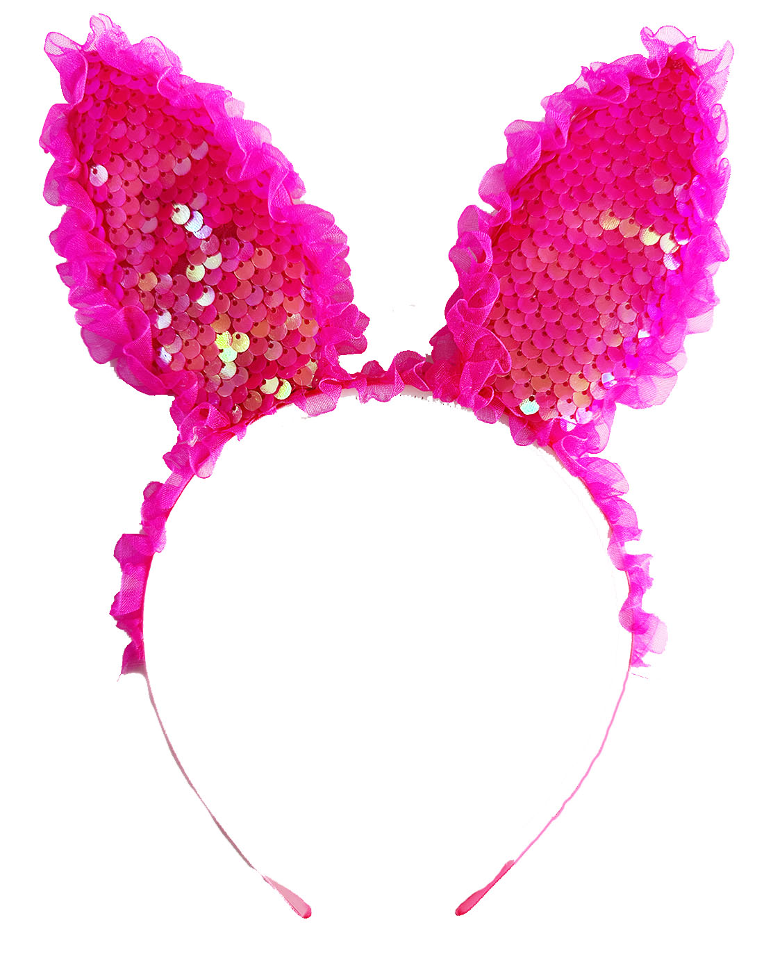 Fuşya Dantelli Işıklı Tavşan Kulak Taç
