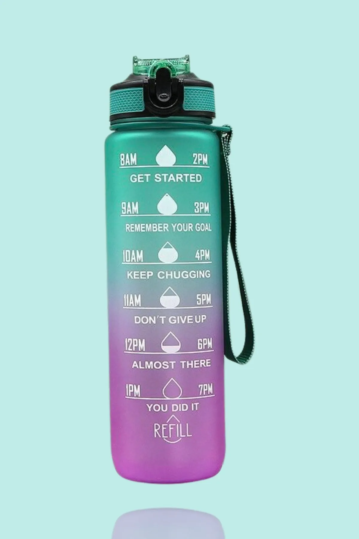GÜNLÜK MOTİVASYON SU MATARASI 1000 ml Motivasyonel Zaman Çizelgeli Su Matarası İlham verici alıntılar ve net zaman işaretçisi ile bu su matarası günlük su alımını izlemek ve gün boyunca su tüketimini teşvik etmek için harikadır.Birbirinden farklı canlı renk tasarımlarıyla yalnızca kendiniz için değil, aynı zamanda sevdikleriniz için güzel bir hediyedir.Bu uzun ömürlü su matarası sayesinde günlük pet şişe kullanımınızı azaltabilirsiniz.1000 ml. kapasitesi ile suyunuzu günde birçok kez yeniden doldurmak zorunda kalma sorununu çözer.Açılabilir geniş ağzı sayesinde buz küpleri ve meyvelerle doldurulması ve temizlenmesi kolaydır.Gelişmiş tasarımı sayesinde su akıtmaz akıntı yapmaz, farklı kullanım seçenekleri ile pipetli veya pipetsiz olarak kullanılabilir, özel sapı ile her yere kolaylıkla taşınabilir.BPA VE TOKSİT MADDE İÇERMEZ SAĞLIK DOSTU BİR ÜRÜNDÜR !Lütfen bulaşık makinesinde veya sıcak su ile yıkamayınız.Sıcak içecekler için uygun değildir.Kapağı 2 kademeli açılmaktadır, kapağı sonuna kadar ittirin, kapak sabitlenecektir, böylelikle suyunuzu daha rahat içebilirsiniz.Hedefe ulaşmadan bırakmak yok!Planlayıcı ve motive edici tasarımı sizi günlük su içme hedefinize ulaşmaya teşvik eder.Kolay taşınabilir şık tasarımıyla antrenmanlarınızda ve gün içinde yanınızdan ayırmak istemeyeceksiniz.Paket İçeriği 1 adet günlük motivasyon su matarasıÜrünler Stok Durumuna Göre Karışık Renk Gönderilecektir!!!