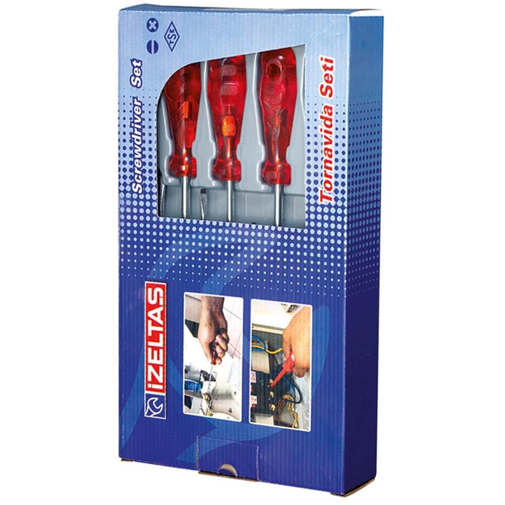 İzeltaş 4100 Düz Tornavida Takımı 8 Parça Kraft