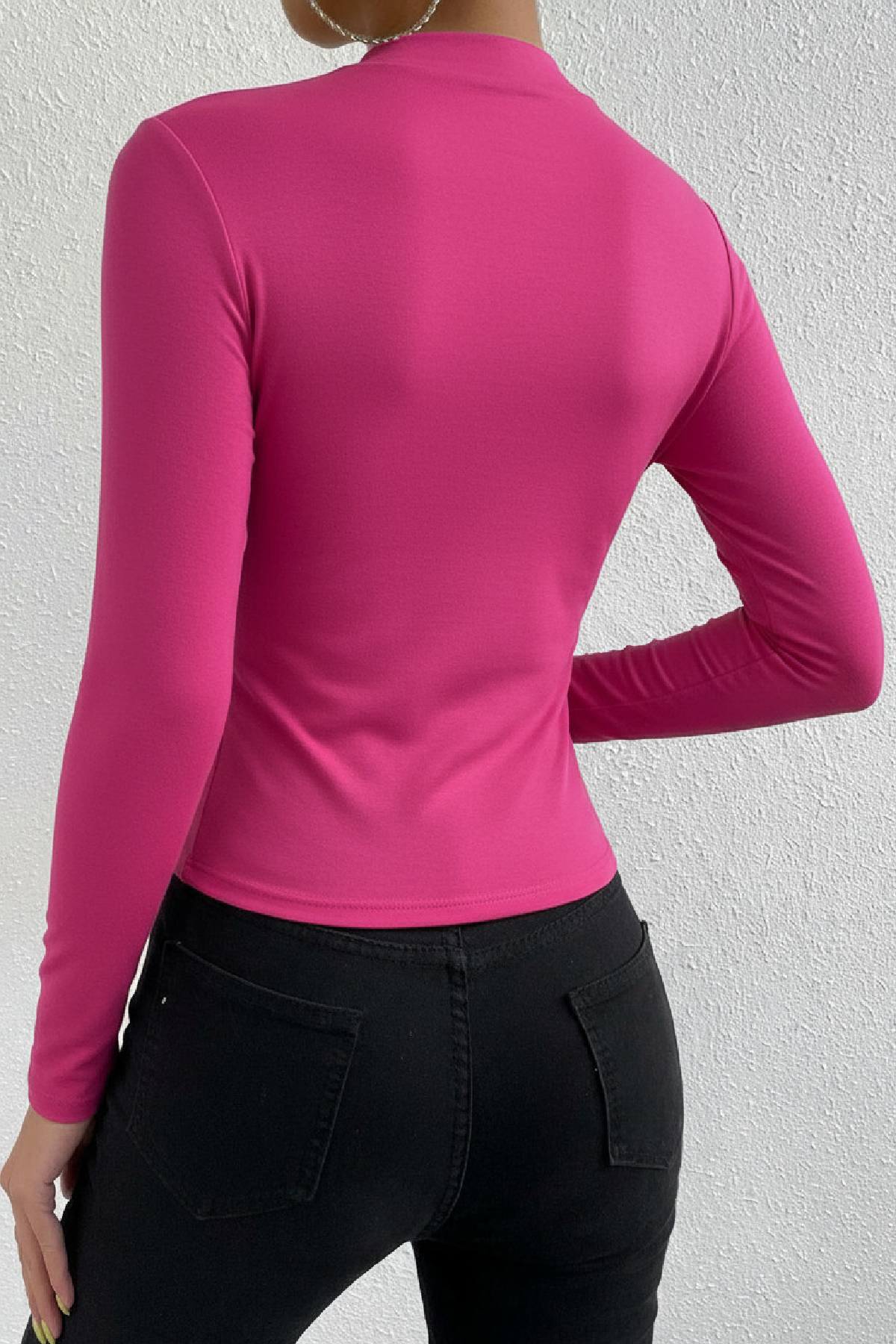 Kadın Fuşya Belden ve Boyundan Büzgü Detaylı Uzun Kollu Bluz