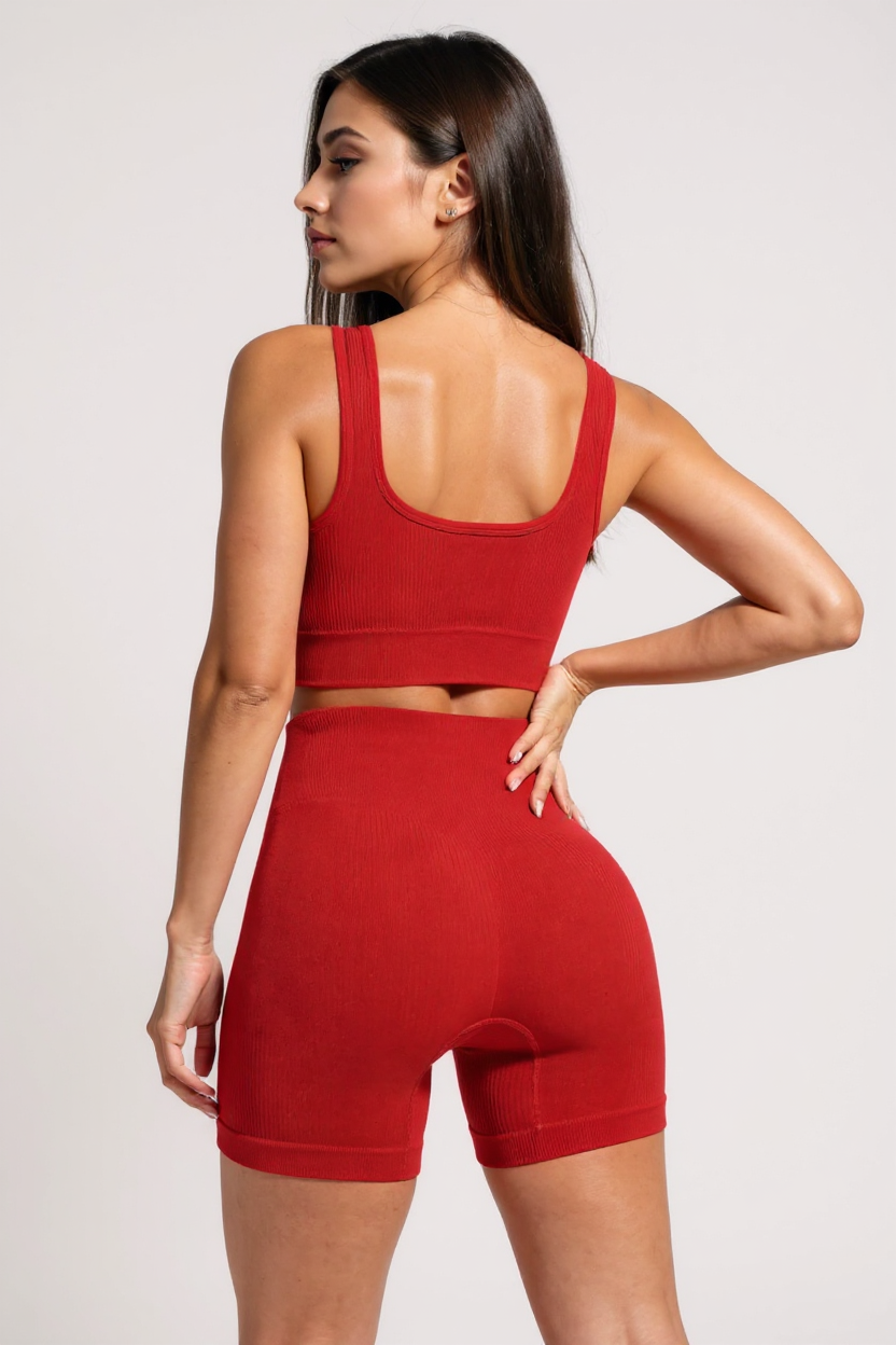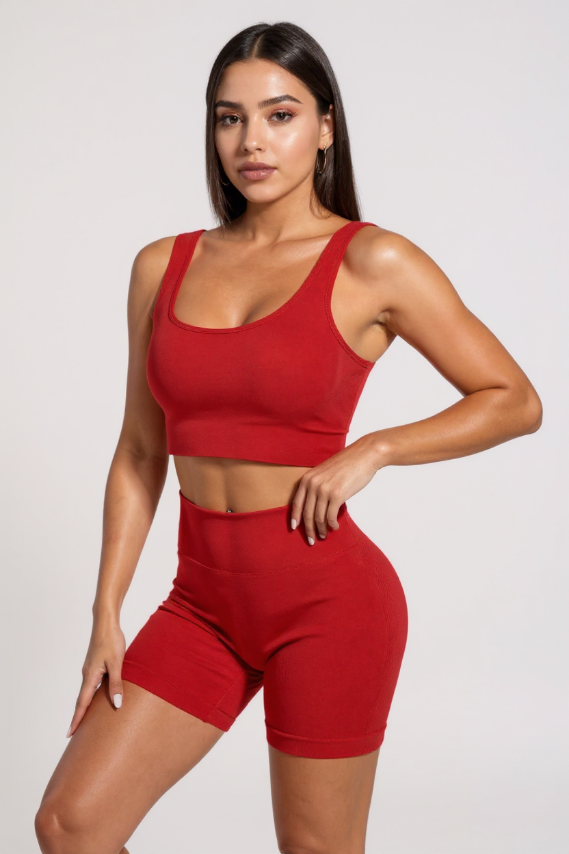 Kadın Kırmızı Kalın Askılı Yüksek Bel Şortlu Gecelik Takımı – Modern, Konforlu ve Günlük Kombinlere Uygun