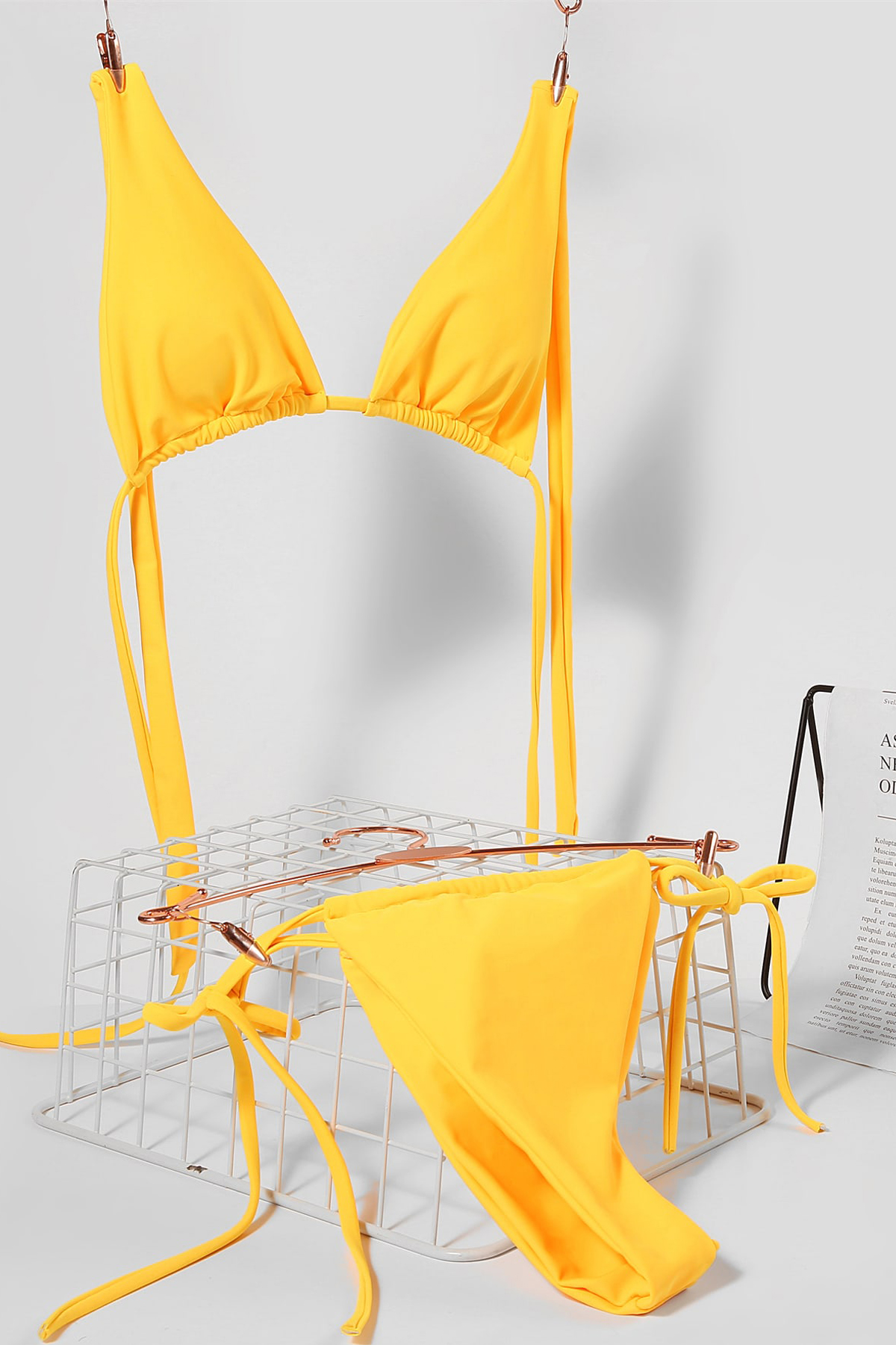 Kadın Sarı Yandan Bağlamalı Tangalı Üçgen Bikini Mayo Takımı – Modern, Konforlu ve Günlük Kombinlere Uygun