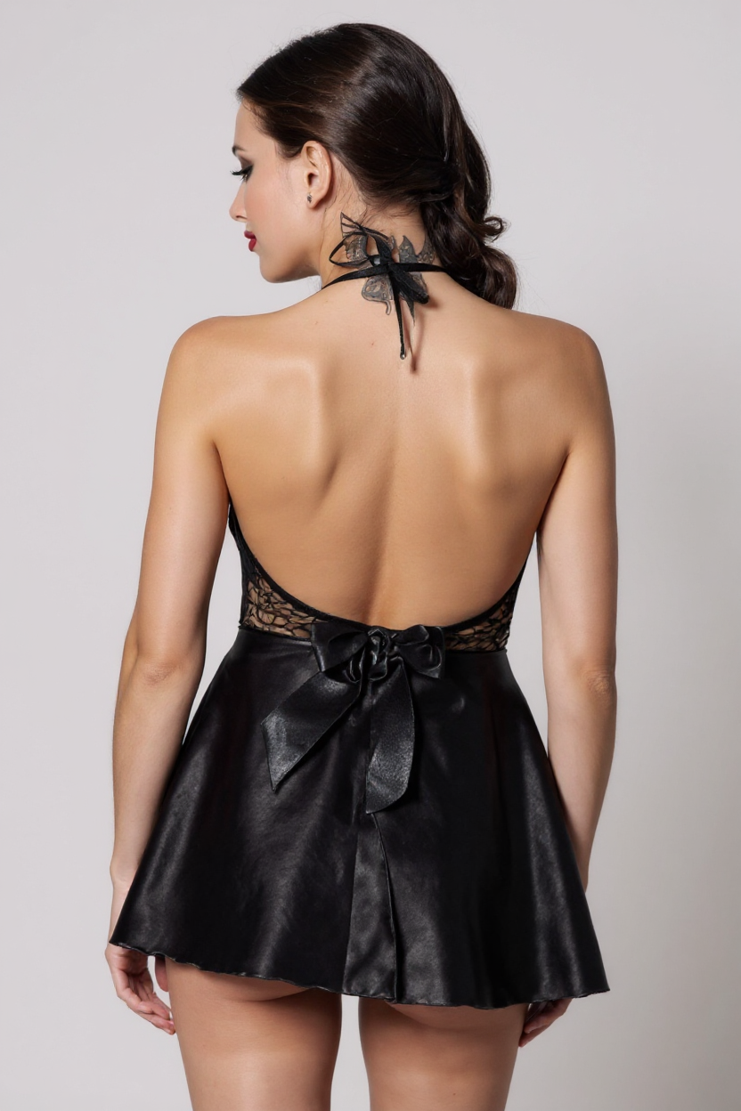 Kadın Siyah Saten Dantelli Dekolteli Gecelik – Modern ve Şık Tasarım