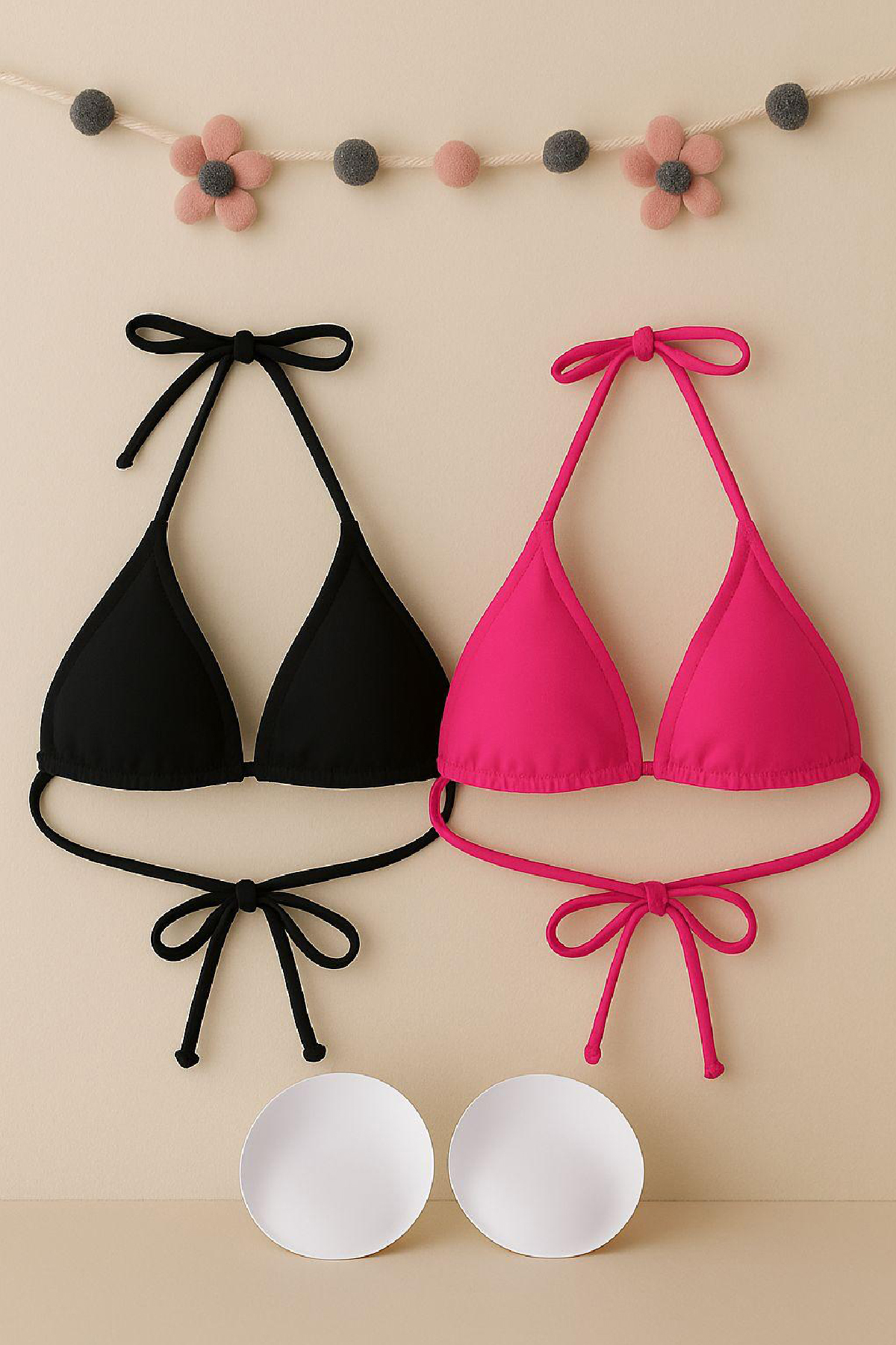 Kadın Siyah ve Fuşya Minimal Kesim Üçgen Bikini Üstü – Modern ve Şık Tasarım