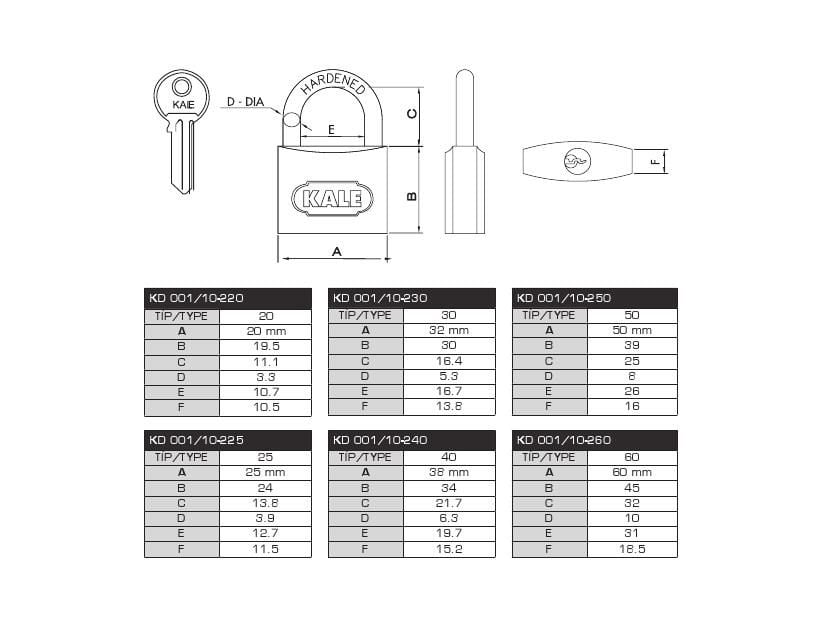Kale 38 mm Sarı Pirinç Asma Kilit KD-001/10-240