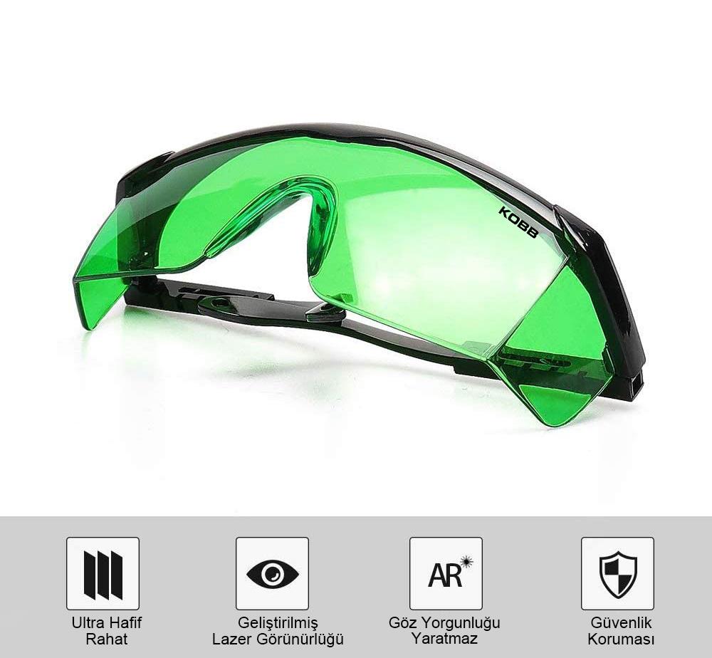 · KOBB KBL1G Yeşil Çizgi Lazer İzleme ve Epilasyon Gözlüğü · Açık veya kapalı alanlarda lazer ışın hattını daha uzak mesafelerde rahat görmenizi sağlar. · Tüm yeşil lazer hizalama ve lazer metreler ile kullanıma uygundur. · Göz sağlığına zarar vermez. · Lazer Epilasyon cihazları ile kullanıma uygundur. · Lazer aletinin gücü zayıf ve lazer ışını zayıf olduğunda, Lazer izleme gözlüğü ile yeşil lazer çizgisinin veya yeşil lazer noktasının görünürlüğünü artırarak kolay görünmesini sağlar. · Lazer izleme gözlüğü sayesinde, doğadaki yeşilin yanı sıra diğer renklerde ışığı filtrelemenize yardımcı olarak parlak veya yanıp sönen lazer ışınından dolayı göz yorgunluğunu azaltır. · Lazer izleme gözlüğü kullanmanız lazer ürünlerinin ışınlarına karşı göz tansiyonunu minimuma indirir. · Lazer izleme gözlüğünün uzunluğu 4 farklı uzunlukta ayarlanarak yaklaşık 2cm (9- 11,4 cm) ölçülerinde kullanılabilir. Miyop veya uzak görüşlü gözlüğünüzü çıkarmanıza gerek kalmadan kullanabilirsiniz. · Sağlam ve dayanıklı yapısıyla birlikte 18gr’lık Ultra hafif özel plastiği sayesinde maksimum rahatlık ve konfor sağlar. · Boyuna veya duvara asmayı kolaylaştırmak için ip bağlantı delikleri ile kolay kullanım sağlar.