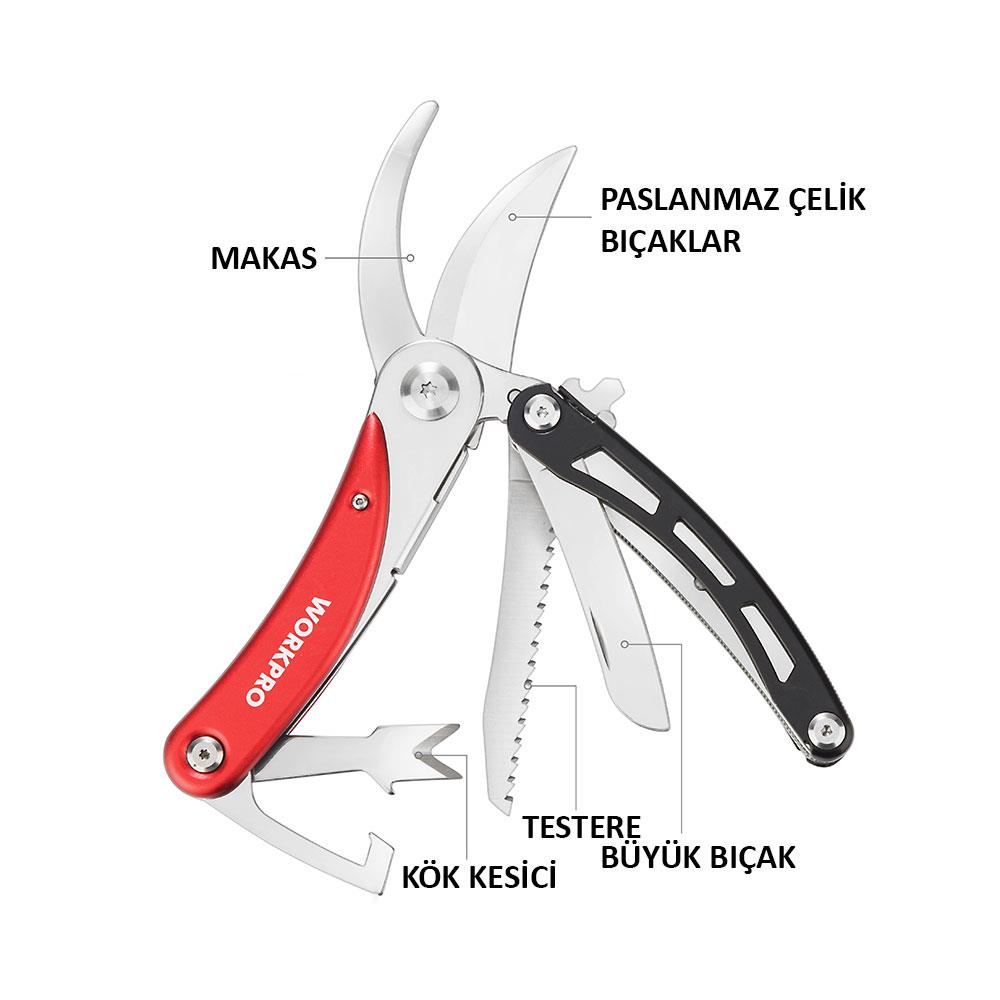 WORKPRO WP382005 4 IN 1 Çok Fonksiyonlu Bağ Bahçe Dal Budama Makası