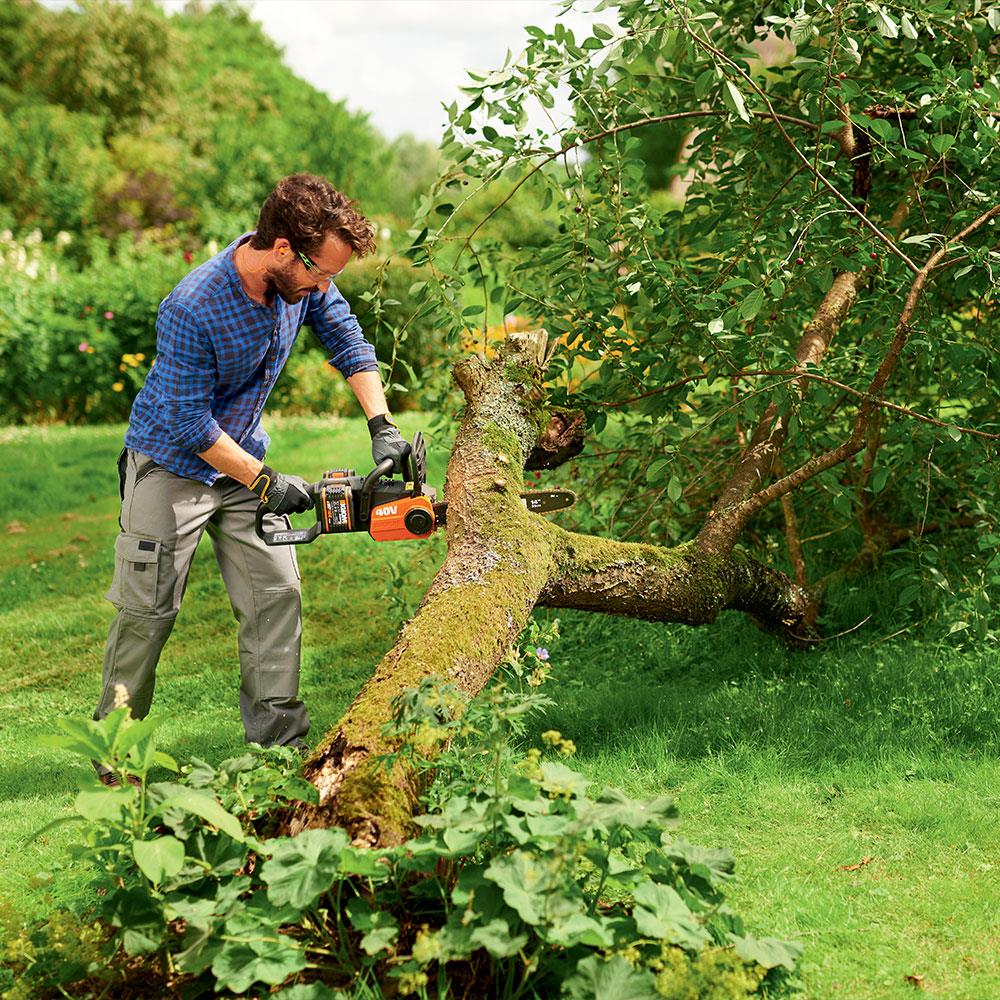 40Volt güçlü motor, 35cm pala boyu ve yüksek mukavemetli dişli mekanizması sayesinde 35cm çapa kadar kalas, kütük ve her türlü ağaçta üstün kesme performansı sağlar.